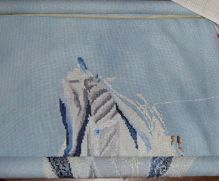 Okay so after seeing Felicity's beautiful mermaid yesterday it made me feel guilty for not continuing to work on MLOTS and it also gave me the motivation I needed to pull her off the shelf and get working on her. So i got in several stitches while watching Pirates of the Caribbean At worlds end for like the millionth time. Don't ask what my obsession is with that movie but to me its a good noise maker while I stitch away. Plus I like the pirate song, LOL. Okay back to MLOTS, I am debating about doing all the beading on her arm and then doing her hand or if I should continue the stitching of her cape. I guess I will stitch her cape and when I get bored I will go to the beading and that should mix things up a bit. I looked in my WIP folder and the first picture I took of this was Feb 4, 2008! I was in shock I had been working on her this long. I really need to get her completed.
